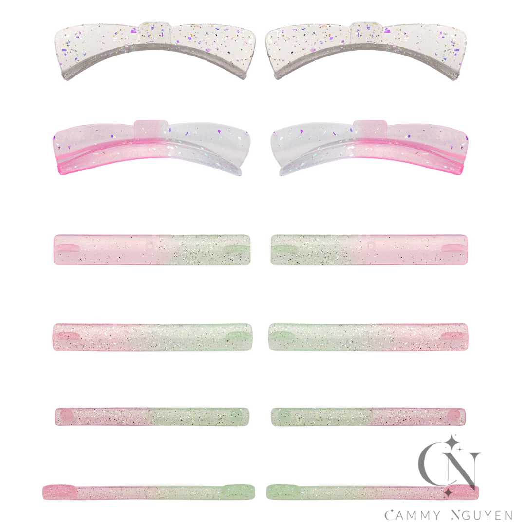 2 curved pairs for wrapping comfortably around the eye contour, and 4 flat pairs for straight placement and flexible control.